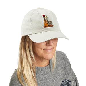 Show your love for CaliAmericana Vol.III in our all-day, all-cotton baseball cap. Garment-washed for that vintage look and soft feel. Featuring a low-profile, unstructured 6-panel design with an adjustable fabric and adjustable back. Cream colored hat with Album art stitching. One size fits most. Designed and embroidered in Santa Barbara, California. Limited edition.